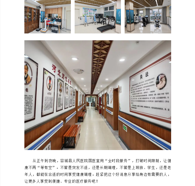 【容城县紧密型医共体】 —— 容城县人民医院国医堂便民升级:10 月 13 日起午间夜间门诊同步开,全天守护就医更省心