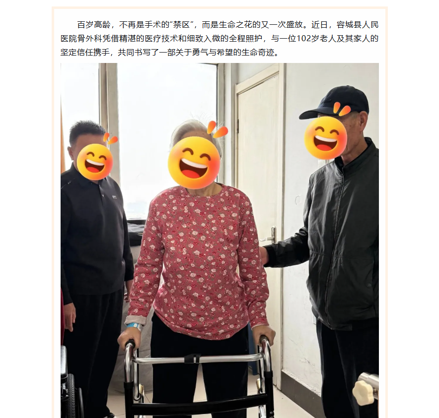 【容城县紧密型医共体】——容城县人民医院成功为百岁老人实施骨科手术