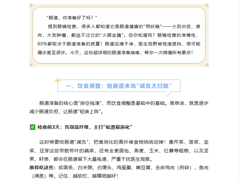 容城县紧密型医共体【容城县人民医院-内镜室】——肠镜检查前,肠道准备攻略请收好!