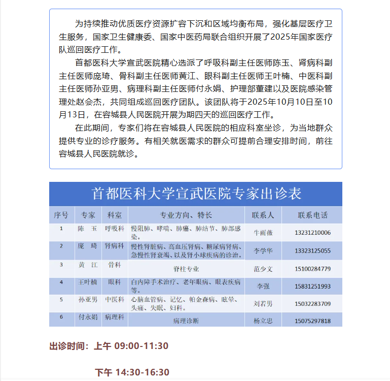首都医科大学宣武医院国家巡回医疗 —— 容城县人民医院站