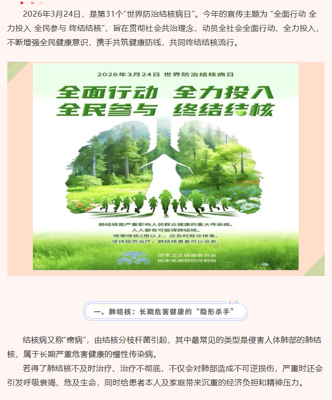 容城县紧密型县域医共体——【世界防治结核病日】全面行动,全力投入,全民参与,终结结核!